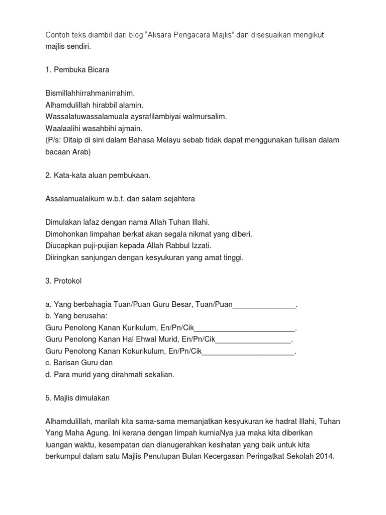 Teks Pengerusi Majlis Minggu Panitia Pai Pdf