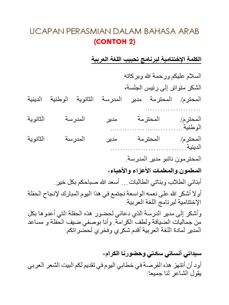 Contoh 2 Ucapan Perasmian Dalam Bahasa Arab Pdf